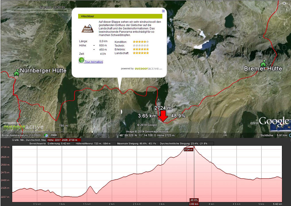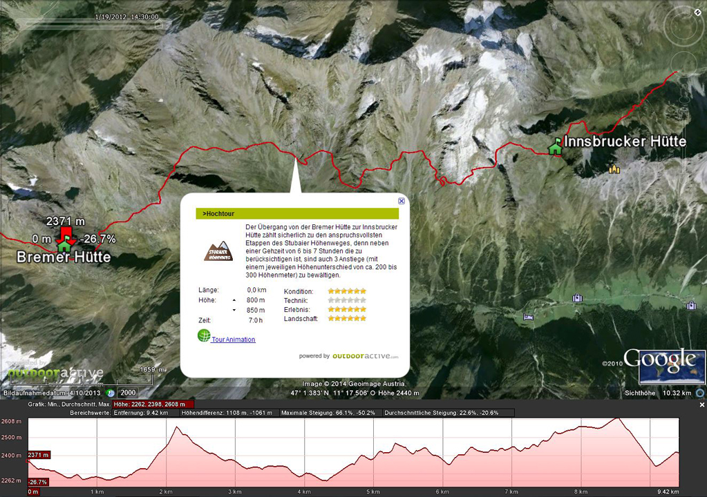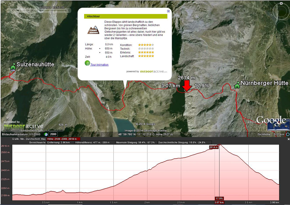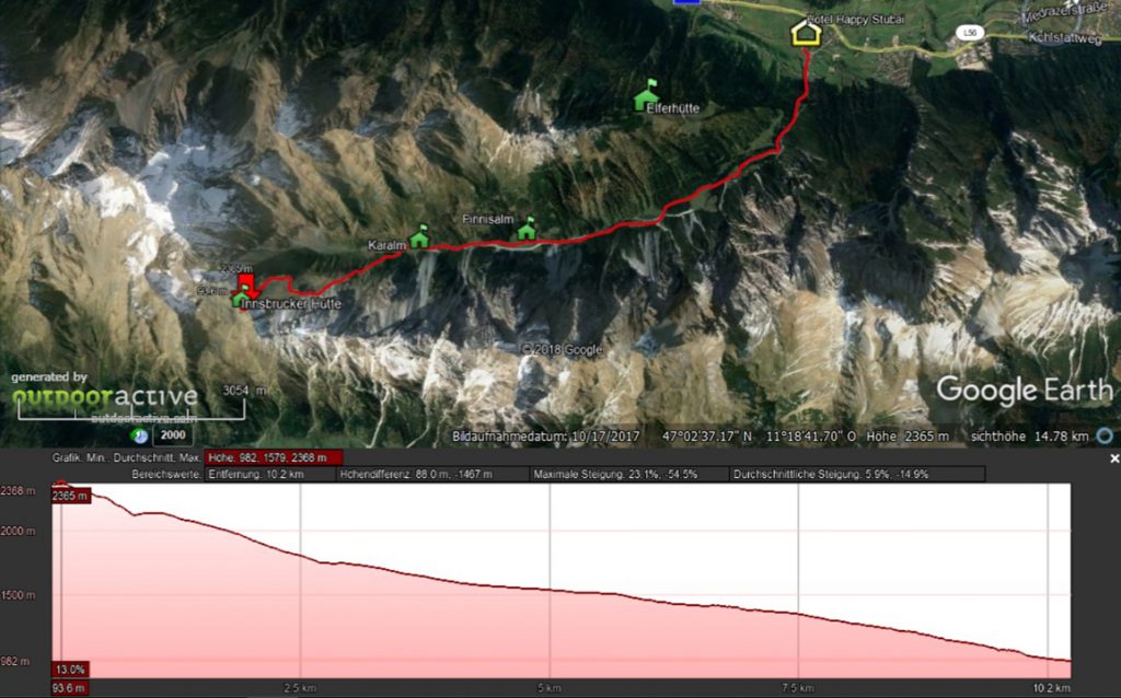 zur Innsbrucker Hütte - Etappe – 12,5 km – 128 ˄hm – 1.514 ˅hm – 03:30 h