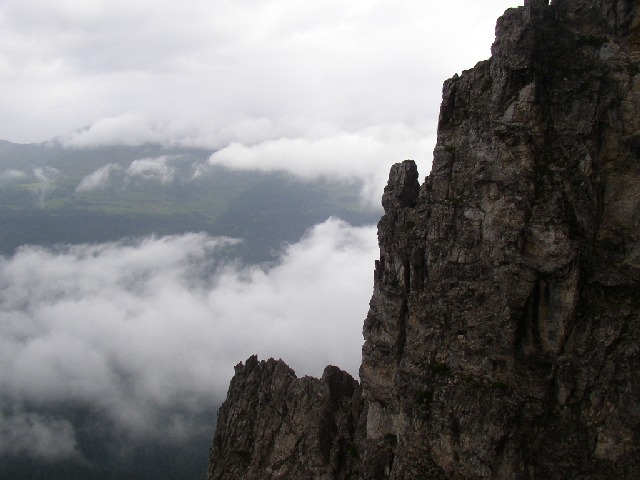 Wir warten noch ein wenig auf Wetterbesserung und trösten uns mit den stimmungsvollen Bildern, die das Wetter uns lässt. Doch letzten Endes müssen wir einsehen, daß es heute nichts wird und steigen enttäuscht wieder ab.